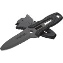 Le Pilot de NRS est un couteau à étui fonctionnel et léger. Avec une lame dentelée et tronquée à son extrémité, il est efficace pour couper une sangle ou une corde sans risquer de se blesser.